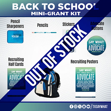 Kick off the school year with the Say What! Back-to-School Kit! This kit has everything you need to spread the word about living tobacco-free while gearing up for a new semester. Inside you’ll find pencils, sharpeners, stickers, and buttons to share with your peers, plus recruiting posters and half cards to help grow your group. To top it off, each kit includes a limited edition of Say What! backpacks.