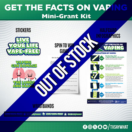 Mini-Grant Kits completely free of charge! These “projects-in-a-box” include well-designed, tobacco prevention-focused materials that also connect each group’s local efforts to the broader statewide Say What! initiative.