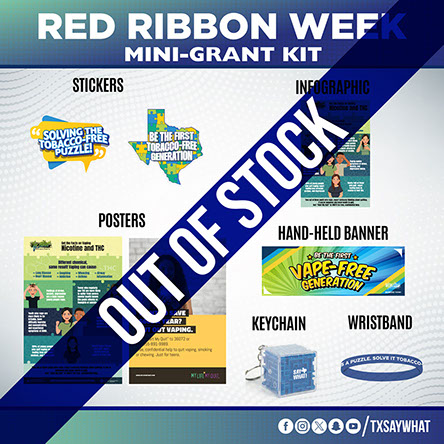 Red Ribbon Week is the perfect time to show that every choice matters in creating a tobacco-free future! The Piece by Piece: Solving Life Tobacco-Free Kit gives you everything you need to host a fun, interactive pledge activity at your school. Students will design their own puzzle pieces with personal tobacco-free commitments and add them to a pledge wall that comes together piece by piece. Each kit also includes infographics, wristbands, keychains, handheld banners and stickers to celebrate being tobacco-free!