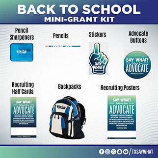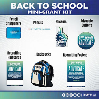 Kick off the school year with the Say What! Back-to-School Kit! This kit has everything you need to spread the word about living tobacco-free while gearing up for a new semester. Inside you’ll find pencils, sharpeners, stickers, and buttons to share with your peers, plus recruiting posters and half cards to help grow your group. To top it off, each kit includes a limited edition of Say What! backpacks.