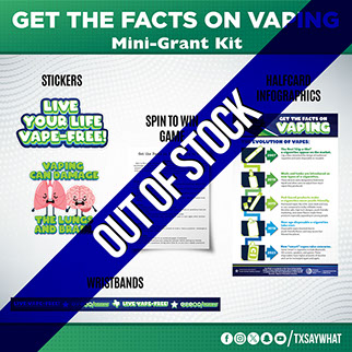 The Grow the Future mini-grant kit connects environmental awareness and tobacco prevention through infographics, giveaway items, and the Grow the Future activity. Participants will plant wildflower seeds to represent the growth of a cleaner, healthier, tobacco-free Texas and mark each location with simple facts about tobacco’s environmental impact.