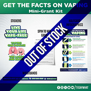 The Grow the Future mini-grant kit connects environmental awareness and tobacco prevention through infographics, giveaway items, and the Grow the Future activity. Participants will plant wildflower seeds to represent the growth of a cleaner, healthier, tobacco-free Texas and mark each location with simple facts about tobacco’s environmental impact.